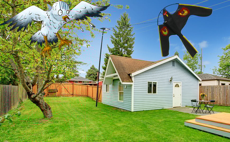 | pointes d’oiseaux:Rendre la cour laide, occuper de la place et pas facile à placer | Leurre de hibou :Pas vif, seulement une forme externe, pas d’effet répulsif bionique contre les oiseaux | Effaroucheur d’oiseaux à ultrasons :Une puissance élevée est nocive pour les enfants et les chiens, et une petite puissance est inutile pour les oiseaux |