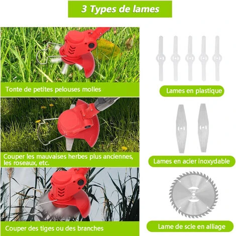 Coupe-herbe sans fil KITYTETY avec batterie, roues, lames, chargeur