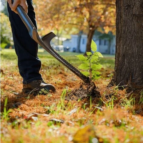 Utilisation : Cet outil de désherbage permet de se débarrasser des mauvaises herbes profondément enracinées ou des semis d’arbustes et d’arbres indésirables. Elle est idéale pour creuser des trous pour les bulbes dans les sols difficiles.Lame dentelée : Le désherbeur ROOTSLAYER possède une lame en V inversée avec des dents ultra aiguisées en acier de carbone qui lui permet d’avoir une performance optimale dans tous les types de sol, c’est l’outil qu’il vous faut pour couper les racines facilement.Matériaux de qualité supérieure : la lame en forme de V inversée est solide et très durable, car elle est fabriquée en acier de carbone.Prise en main parfaite : La poignée ergonomique en forme de O, vous permet une prise en main facile, ce qui offre un total contrôle de l’outil. La poignée ne glisse pas même en l’utilisant avec force.Dimensions : 111.76×24.13×10.16 cmLe désherbeur ROOTSLAYER avec ses dents aiguisées en acier de carbone est spécialement conçu pour déterrer les mauvaises herbes coriaces aux racines profondes. Sa lame peut déchirer les racines et autres obstructions dans le sol pour se débarrasser des arbustes et des semis indésirables. Le RootSlayer désherbeur a une conception polyvalente qui convient aux tâches de désherbage et de creusement les plus difficiles.