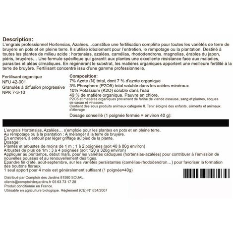 - Un équilibre parfait en nutriments pour activer la terre de bruyère.