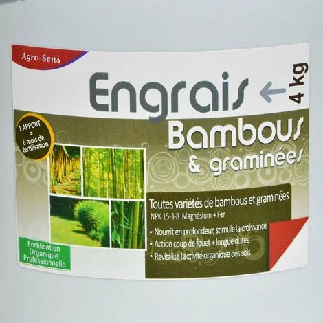 - Fertilisant complet spécialement formulé pour satisfaire l’intégralité des besoins des bambous et graminées.