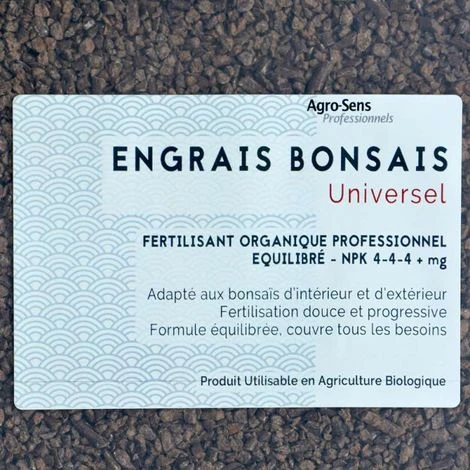 L’engrais bonsaïs universel, un allié de taille pour tous les petits arbres. NPK 4-4-4 + 4 % mg