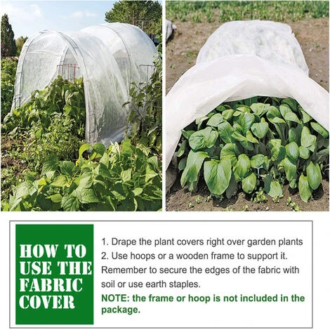 ※ Comment utiliser le couvert végétal: Vous pouvez couvrir directement le couvert végétal sur la plante et fixer la couverture antigel de la plante avec de la terre, des pierres ou des clous. Vous pouvez également soutenir la couverture de rangée flottante avec des cerceaux, laissant suffisamment d’espace pour que la plante respire et pousse. Vous pouvez également couper la hotte végétale à différentes tailles en fonction des différentes utilisations.