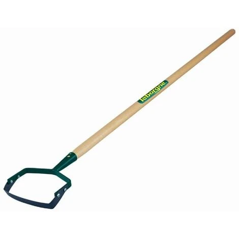 2 outils en 1: côté lame (grattoir) pour couper les jeunes pousses sous le collet, et 1 côté lame courte pour couper les plants coriaces et rassembler les herbes coupées. Résiste à une utilisation intensive. Equipé d’un manche en bois percé.