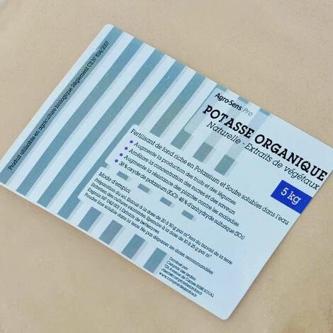 - 100 % potasse organique pure, issue de la transformation de betteraves, utilisable en agriculture biologique et non périssable
