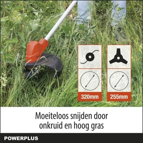 Cette débroussailleuse Powerplus a une largeur de coupe de 320 mm avec la bobine et de 255 mm avec la lame de coupe. Elle vous permettra de couper sans effort les mauvaises herbes et l’herbe haute. L’appareil est également idéal pour finir votre pelouse après la tonte. Grâce à sa forme compacte, vous pouvez facilement l’utiliser dans les endroits et les coins que vous ne pouvez pas atteindre avec votre tondeuse à gazon. Vous n’avez donc pas besoin de sortir cette grosse tondeuse à gazon lorsque vous voulez retoucher l’herbe sous les bancs du jardin.
