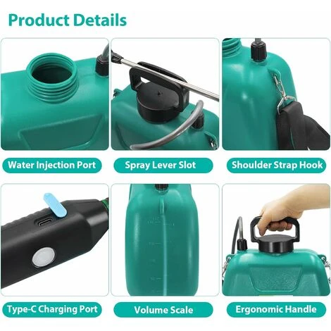 Libérez vos mains : ce pulvérisateur portable est équipé d’une poignée alimentée par batterie, qui peut contrôler le spray marche/arrêt avec un bouton à tout moment, pas besoin de pompage manuel, pulvérisation automatique. Et la batterie rechargeable