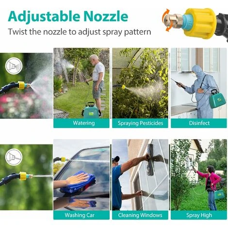 répondre pleinement à vos besoins ! À utiliser avec le tuyau de 3,5 pi et la perche télescopique qui s’étend de 8,66 po à 23,6 po pour aider à pulvériser de plus grandes distances ou des endroits difficiles à atteindre.