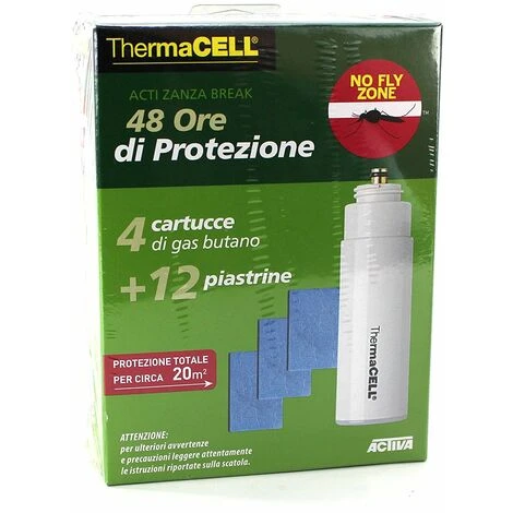 Kit de recharge anti-moustiques ThermaCELL. Ce pack contient 4 cartouches et 12 plaquettes suffisantes pour 48 heures de fonctionnement. (Une plaque ThermaCELL a une durée de 4 heures. Un bidon de gaz butando dure 12 heures.) Uniquement compatible avec les produits suivants : Mosquito Halo, Anti- Lanterne anti-moustiques et anti-moustiques portable.