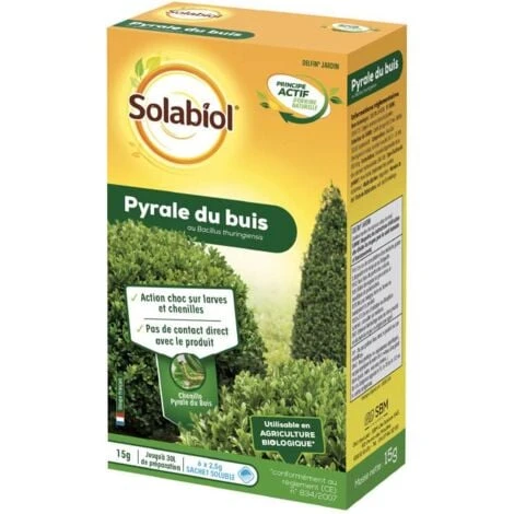 Le traitement Pyrale du buis est la solution idéale pour protéger vos buis contre la pyrale. En utilisant une formule bio, vous pouvez protéger votre jardin tout en respectant l’environnement. De plus, l’étui pratique de 6 x 2,5 g vous permet d’avoir toujours du traitement à portée de main. N’attendez pas que la pyrale attaque vos buis, utilisez dès maintenant le traitement Pyrale du buis.