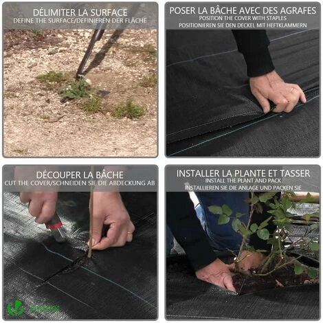 La barrière anti-mauvaise herbe à une excellente perméabilité permet à l’eau et à l’air de la pénétrer et nourrit vos plantes, mais empêche les mauvaises herbes.