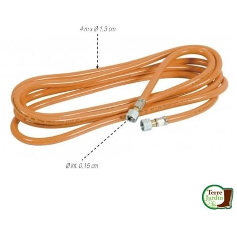- Tuyau flexible pour une utilisation de bouteille de gaz propane (utilisation indispensable d’un détendeur) ou gaz butane (utilisation indispensable d’un raccord, non fourni) avec votre desherbeur thermique superbioflamme.