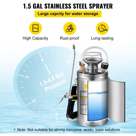 VEVOR Pulvérisateur Acier Inoxydable Pulvérisateur à Pompe Manuelle Capacité 6 L